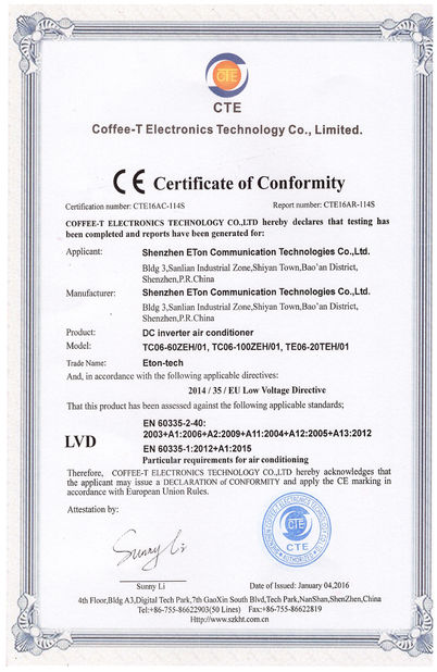 معيار:CE عدد:CTE16AR-114E تاريخ القضية:2016-04-04 نطاق / متوسط:Industrial DC air conditioner(EMC) صدر عن:CTE |