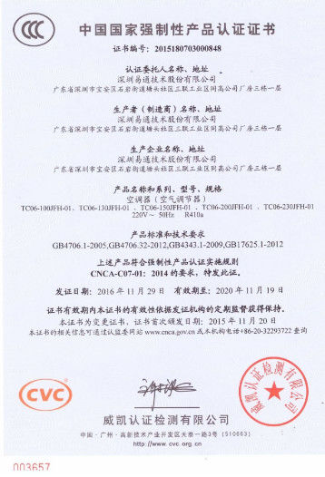 معيار:3C عدد:2015180703000848 تاريخ القضية:2016-11-29 تاريخ انتهاء الصلاحية:2020-11-19 نطاق / متوسط:Air conditioner صدر عن:CVC |